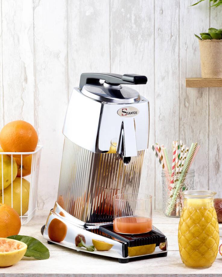 Stolní elektrický lis na citrusy N 10C s přítlačnou pákou a mikrospínačem od francouzského výrobce SANTOS.