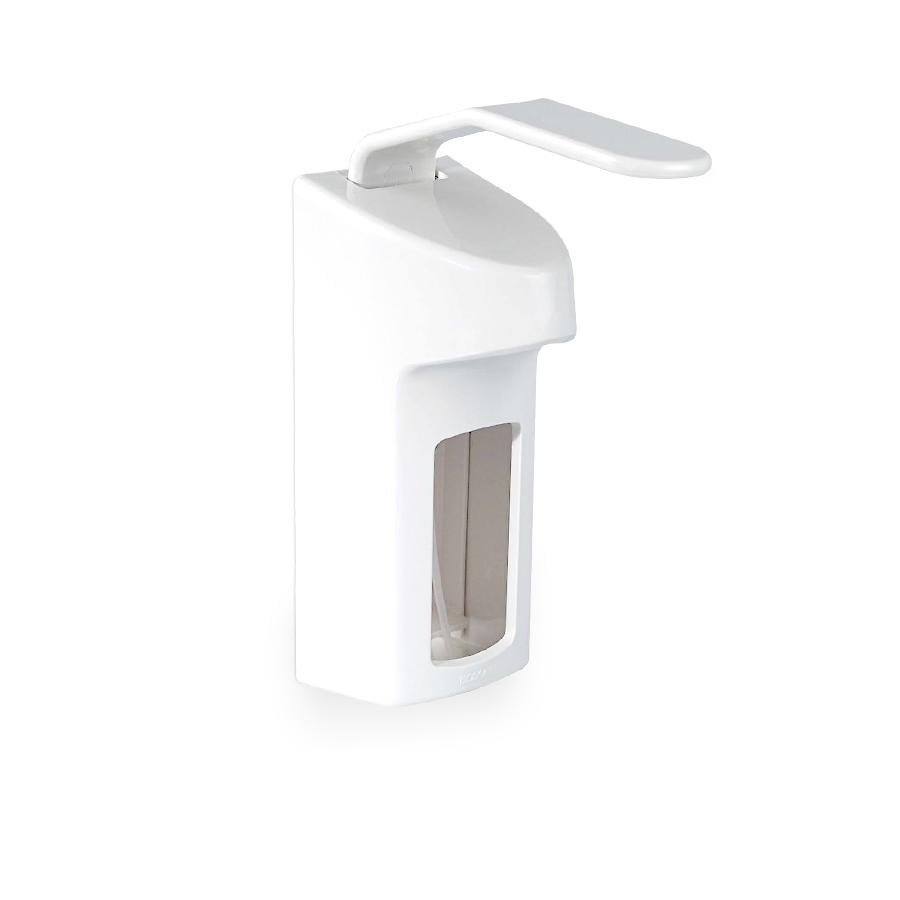 Plastový dávkovač tekutého mýdla, dezinfekce a krému s loketní pákou pro snadné dávkování.