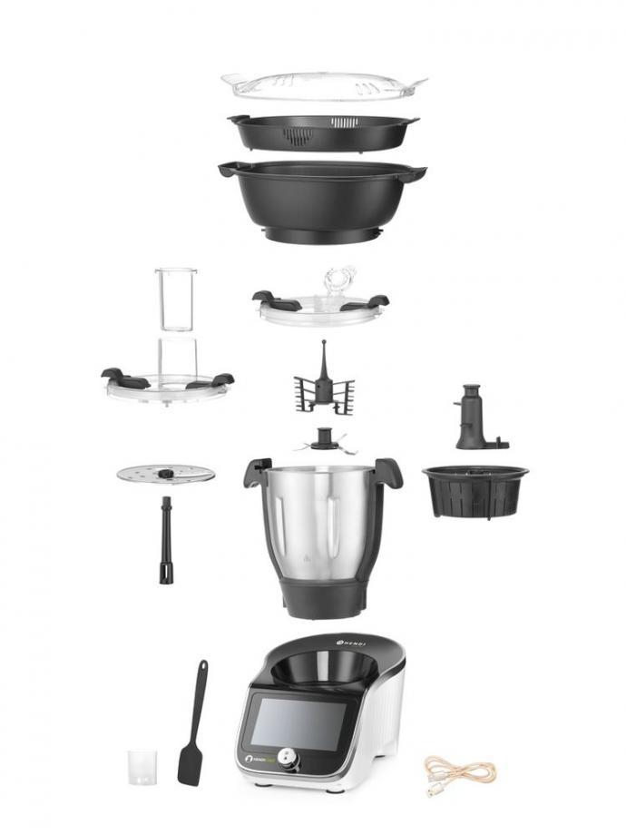Vybavení: Mixér na vařené potraviny Šlehač – nepostradatelný při výrobě emulzí, např. majonézy, šlehání bílků nebo smetany. Parní koš 2funkční sekací kotouč – vybavený 13 zuby, možnost krájení na plátky Integrovaná křemenná váha od 5 g do 5 kg s funkcí tárování Drobné příslušenství: