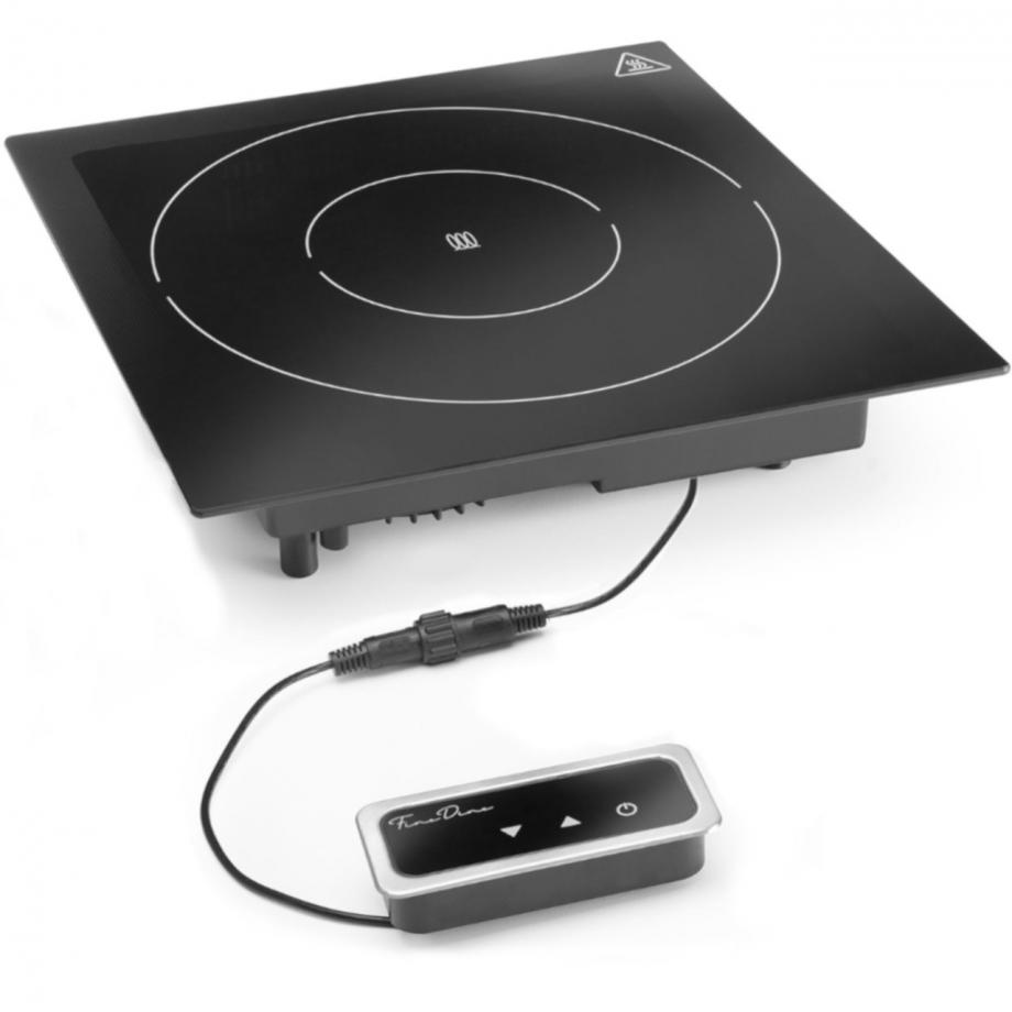 Vestavná indukční deska. Topná plocha z černého křišťálového skla. Deseti kroková regulace výkonu, vybavená elektronickou ochranou proti přehřátí. Dotykový panel a LED displej. délka 350 mm šířka/hloubka 350 mm příkon 1 kW napájení: elektrické napětí: 230 V