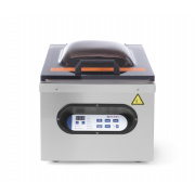 295 mm dlouhá těsnicí lišta, šířka 3,5 mm Tělo a komora z vysoce kvalitní nerezové oceli. Transparentní ABS kryt umožňuje kontrolovat proces vakuování. Pro profesionální užití Regulovatelný čas procesu vakuování a těsnění. Digitální displej zobrazující stupeň vakuování. Výkon: 77 litrů/ min. Rozměry komory: 350×300×(v)110 mm Hmotnost: 24,4 kg
