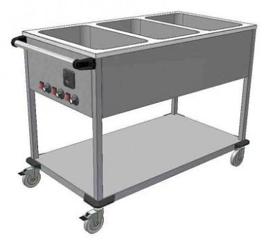 KSVOL-3 - Výdejní vozík s ohřevem s oddělenými lisovanými lázněmi Provedení na 3x GN.