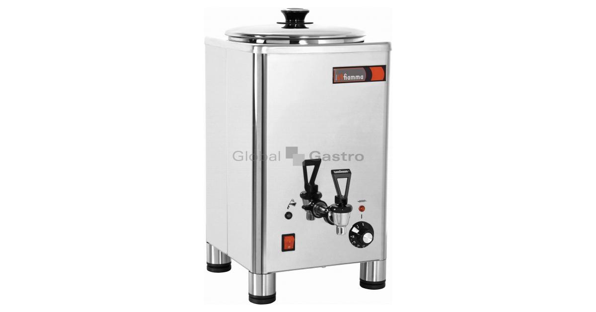Model je v nerezovém dvouplášťovém provedení “bain-marie”s výkonnou topnicí 1,3 kW, která šetrně ohřívá vodu v plášti, zabraňuje připalování a znehodnocení mléka a dalších nápojů. Uvedený termos je vhodný pro přípravu, udržení a výdej různých druhů nápojů (mléko, vodu, kávu, čaj atd.) Termos je ovládán pomocí regulačního termostatu do 85°C, dále je vybaven kontrolkou chodu a hladiny vody v plášti, anti-kondenzačním systémem, vyjímatelnou vložkou, poklicí a výpustným kohoutem (se snadnou údržbou), centrálním síťovým vypínačem a výškově stavitelnými nohami.