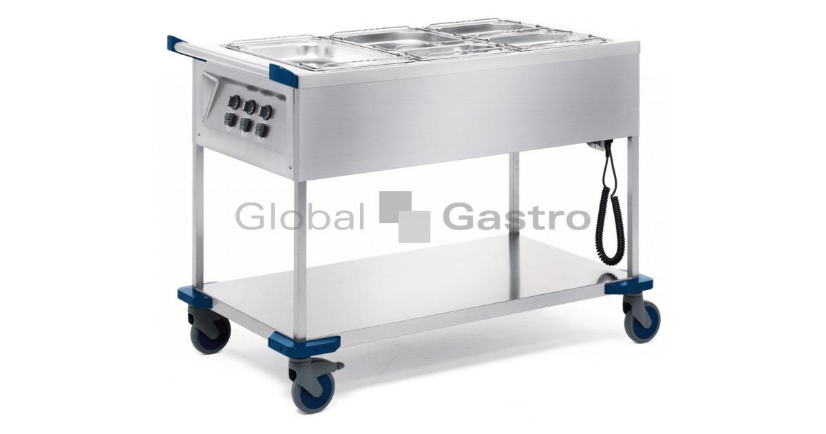 Vany s vylisovaným profilem na dně umožňující lepší výměnu tepla- vany možno používat i pro ohřev bez vody (pro suchý i vlhký provoz – dle typu jídel)- vany mají uvnitř vylisovaný bod pro maximální naplnění vodou a vylisované číslo vany shodné s číslem vypínače- spodní police je pevně přivařena a zvyšuje stabilitu vozíku a prodlužuje jeho životnost- vany bezespárově vevařené, v horní části s profilem pro odtékání kondenzované vody zpět do vany- kolečka průměr 125 mm, z tvrzeného plastu, nerezavějící, odolná proti poškození- povrch –leštěný nerez – dokonalá hygiena při čištění- ergonomické a úrazu zabraňující držadlo – průměr 32 mm- odolné nárazníky proti poškození na všech rozích vozíku- elektrické ovládací prvky zabezpečeny proti mechanickému poškození a proti stříkající a proudové vodě (IP X5)- veškerá elektroinstalace dle platných evropských norem a předpisů (DIN, VDE)