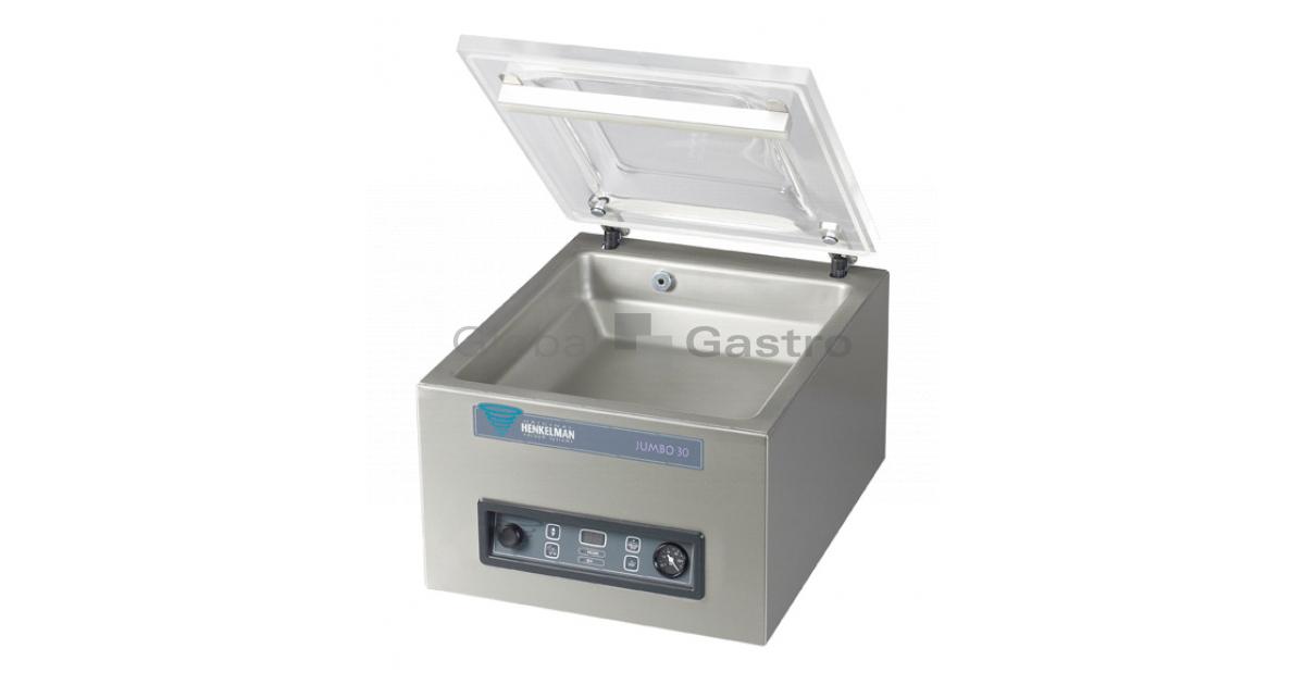 Prodlužte trvanlivost masa, drůbeže, ryb, sýrů, zeleniny a dalších potravin včetně tekutin. Ochraňte je před působením vnějších vlivů. S výkonnou, profesionální a spolehlivou jednokomorovou vakuovou baličkou Jumbo 30 od holandské firmy Henkelman to půjde snadno. Vakuová komora se zaoblenými rohy má délku komory 370 mm, šířku lišty 350 mm (max. šířka sáčku) a výšku komory 150 mm a dokonale uchová trvanlivost produktů.