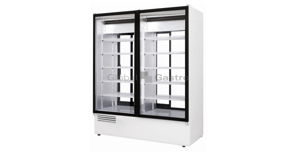 Prosklené chladící skříně – vhodné pro prezentaci, prodej,uskladnění a uchování potravin díky šetrnému způsobu chlazení (statické gravitační). Hygienické provedení – vnější opláštění (bílý lak), nerezové dno vnitřního prostoru, stěny jsou vyrobeny z AL plechu. Skříň je vybavena dvěma samostatně oddělenými chladícími prostory vybavenými 5ks polohovatelných roštů z plastem pokryté oceli. Automatické odtávání, chlad.agregát Elektrolux, prosklené lehce posuvné dveře se samozavíráním,a křídlové dveře ze strany obsluhy pro snadné doplňování zboží.Přehledné mechanické ovládání a nastavení teploty.