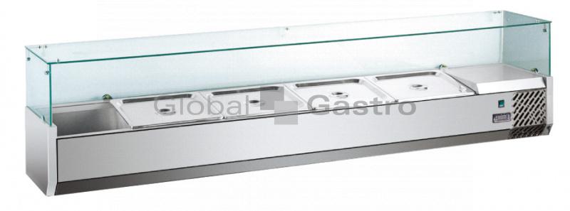 Celonerezové provedení s prosklenou hygienickou nástavbou. Statický chladící systém s automatickým odmrazováním. Modely jsou dodávány bez GN.