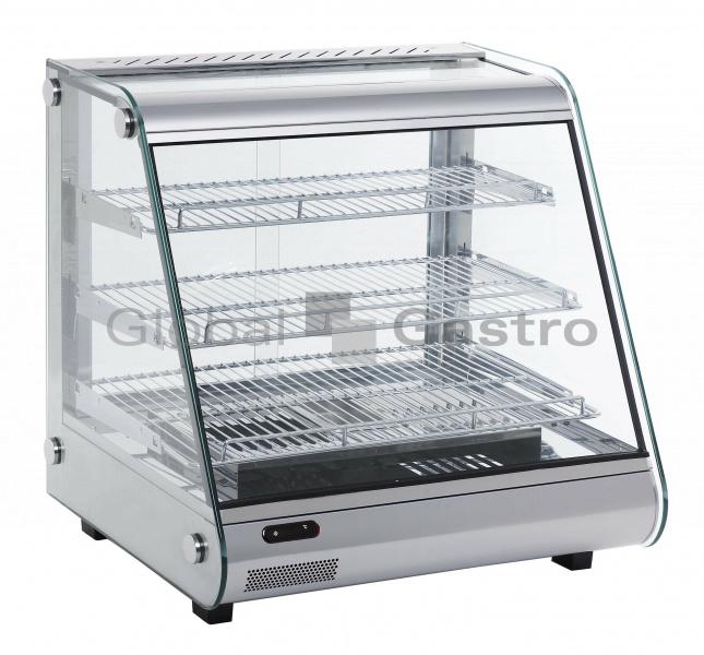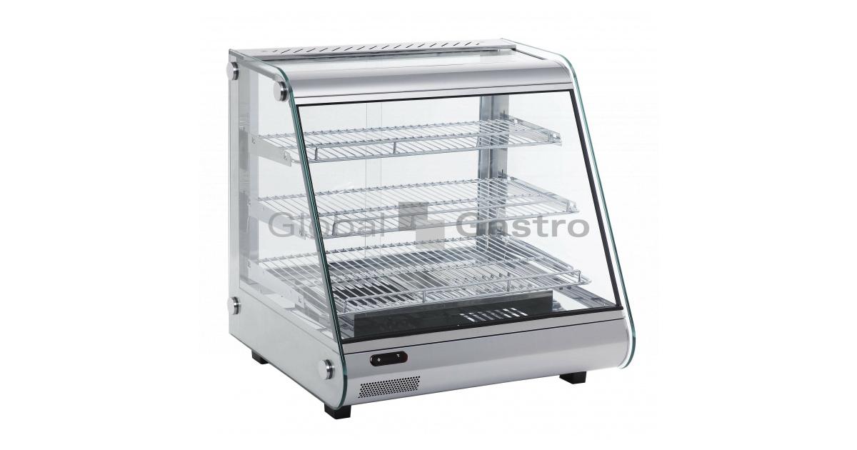 Vyhřívaná panoramatická vitrína s pevným uložením polic, určena k prezentací pokrmů. Vitrína je v elegantním nerezovém provedení ze všech stran prosklená s intenzivním LED osvětlením, které napomáhá prezentaci a prodeji potravin ve všech patrech. Posuvné dveře ze strany obsluhy. Vitrína je ovládána mechanickým termostatem (od 30 do 90°C) a mechanickým teploměrem na čelním panelu. V základní výbavě jsou tři chromové police a zásuvka pro mechanické přivlhčení.