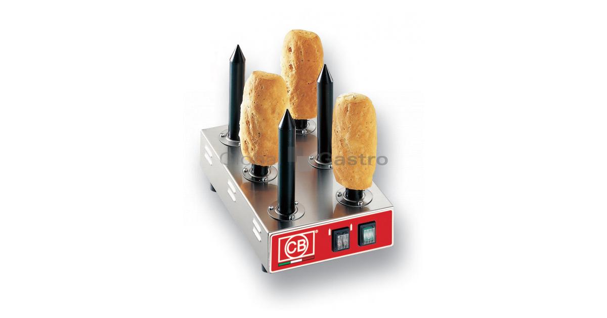 Zařízení slouží k rychlé přípravě párků v rohlíku. Model v celonerezovém provedení. Šest poteflonovaných opékacích trnů (každý se samostatnou vnitřní topnou patronou pro optimální rozložení teploty v celém trnu a výrazně nižší spotřebu). Teplota ohřevu párků je plynule ovládána termostatem.