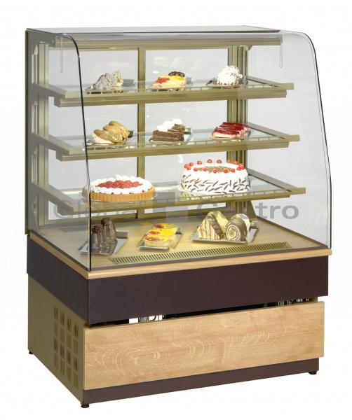 Obslužné chladící cukrářské vitríny GEORGIA určeny k prezentaci a prodeji cukrářských výrobků. Speciální ventilovaný chladící systém (teplotní rozsah +4/+8°C *při okolní teplotě do +25°C a 55% RH), který dokonale prochladí celý výstavní prostor. Vitríny mají jednoduchá skla, čelní oblé sklo je výklopné, jednotlivé police jsou osvětleny pro zatraktivnění vystaveného zboží. Ze strany obsluhy jsou umístěna snadno posuvná prosklená dvířka (dvojité izolované sklo)a elektronické ovládání (s automatickým odtáváním).