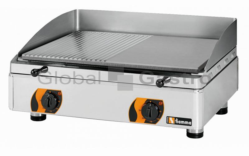 Celonerezové provedení, odkapová miska, kontaktní plochy – zesílená 15mm hladká ocelová grilovací deska s velkou akumulační schopností. Snadné mechanické ovládání. M = dělená gril.deska (hladká/vroubkatá).
