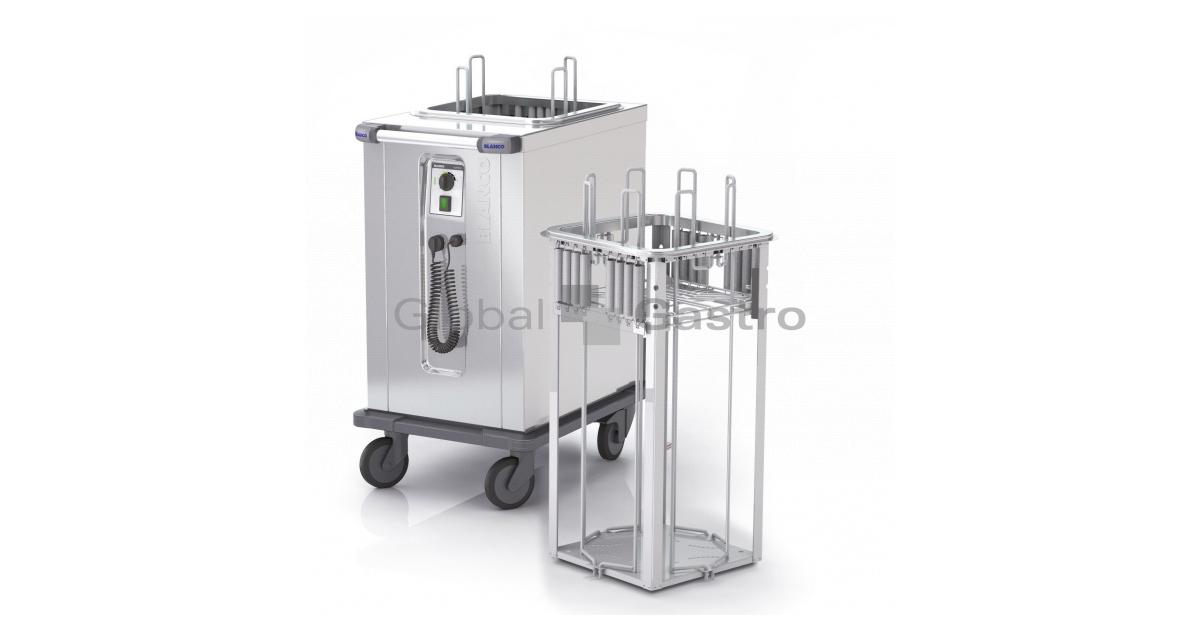 Vyjímatelný zásobník, snadná čistitelnost, údržba a nastavenízátěže talířů. Zásobník je vybaven ukazatelem stavu náplně talířů.Úchyt pro zavěšení čirého polykarbonátového zákrytu. Vyjímatelnázásuvka na odpadní kondenzát. ,, Saving Energy ,, zachování výkonua snížení spotřeby. Celonerezové dvouplášťové a izolované provedení s ohřevem, se čtyřmi pojezdovými kolečky (2× brzděná), rohy jsou chráněny pryžovými dorazy, ergonomické madlo pro snadnou manipulaci v provozu.