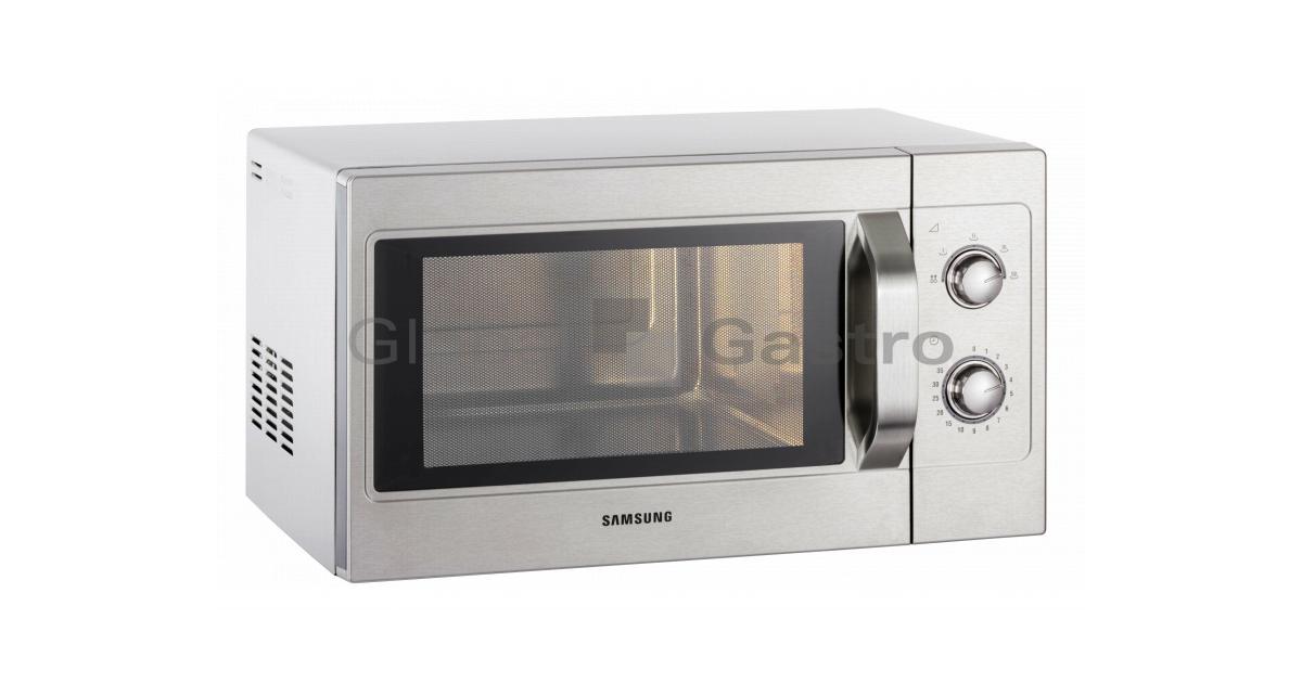 Parametry Výrobce Samsung Napájení 230 V Příkon 1450 W Šířka 517 mm Hloubka 412 mm Výška 297 mm Provedení celonerezové Hmotnost 17,5 kg Rozměr komory 336×349×225 mm Časovač ano Digitální display (čas a hlášení) ne Frekvence 2430 MHz Mikrovlnný příkon 1100 W Možnost nastavení programů ne Nerezové vnější / vnitřní provedení ano Objem 26 litrů Ovládání mechanické Počet magnetronů 1 Počet stupňů mikrovlnového výkonu 5 Tlačítko přidání času ohřevu ne Signalizace ukončení procesu ano Odnímatelný strop ne Tlačítko dvojnásobné množství ne Vniřní prostor nerez (keramické dno) Vnitřní prostor vhodný pro GN 1/2 Vyjímatelný vzduchový filtr (nerez) ne