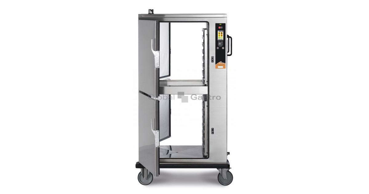 Model RC-156 (průchozí) umožňuje pokrmy dopřipravovat, regenerovat, udržovat a transportovat v teplém stavu při teplotě +65°C. Modely mají zvonkový mechanizmus, který je aktivován přiregeneraci (dosažení provozní teploty) a přechodu do fázeudržování v teplém stavu. Skříně jsou vybaveny zásobníkem vody pro zajištění mobility a optimálního klima uvnitř komory, dále systémem odvlhčení komory a zásobníky na kondenzát. K ohřevu jsou použity výkonné topnice, optimální proudění a rozložení horkého vzduchu v komoře je zajištěno výkonnými reverzními ventilátory. Zařízení jsou v celonerezovém hygienickém provedení včetně komory s oblými rohy. Cena obsahuje vnitřní zásuvy GN s roztečí 70mm.