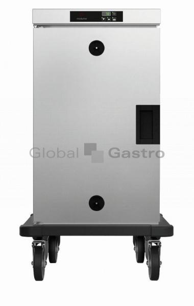 Transportní vozík HHT-081E slouží pro udržování potravin v teplémstavu. Přesné elektronické nastavování tepoty od 30 – 120°C. Ve dveřích umístěny dva ventilační otvory pro manuální odvlhčení komory. Statický kruhový topný systémem šetrného ohřevu využíváa udržuje optimální vlhkost uložených potravin. Kvalitní těsnění komory, oválné rohy, vyjímatelné vnitřní zásuvy. Dveře s možnostívolby otevírání vlevo či vpravo vybaveny odolným těsněním. Ochrana rohů z plastu. Robustní kola 4×150mm, dvě z nich brzděná.Ergonomické madlo pro snadnou ovladatelnost vozíku. Snadná servisní údržba.