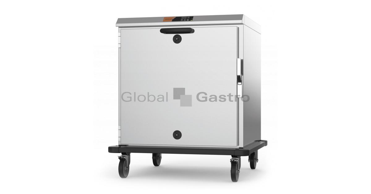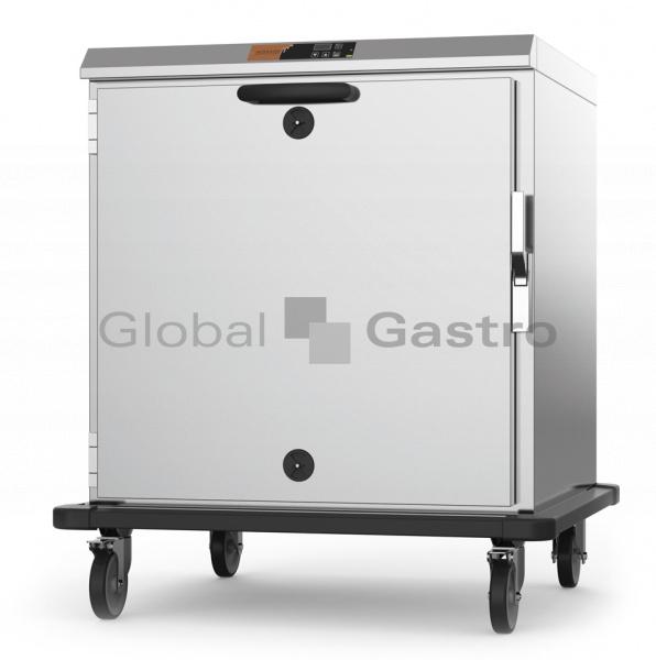 Transportní vozík HHB-048E slouží pro udržování potravin na talířích. Elektronické nastavení tepoty 30 – 120°C. Ve dveřích umístěny dva ventilační otvory pro manuálníodvlhčení komory. Statický kruhový topný systémem šetrnéhoohřevu, přesné a rychlé nastavení požadované teploty.Přehledné elektronické nastavování teploty. Výborné těsněníkomory, oválné rohy, vyjímatelné vnitřní zásuvy. Dveře s možností volby otevírání vlevo či vpravo vybaveny odolnýmtěsněním. Ochrana rohů z plastu. Robustní kola 4×150 mm,dvě z nich brzděná. Ergonomická madla pro snadnouovladatelnost vozíku. Snadná údržba. Kapacita 48 talířů(260mm) nebo 32 talířů(320mm), uvedená kapacita je s držáky talířů PC-260 nebo PC-320.