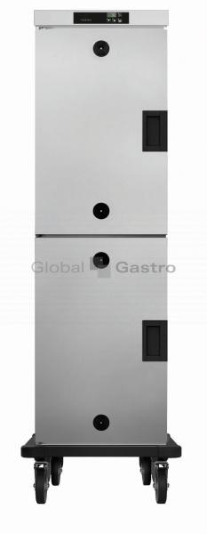 Transportní vozík HHT-081E slouží pro udržování potravin v teplémstavu. Přesné elektronické nastavování tepoty od 30 – 120°C. Ve dveřích umístěny dva ventilační otvory pro manuální odvlhčení komory. Statický kruhový topný systémem šetrného ohřevu využíváa udržuje optimální vlhkost uložených potravin. Kvalitní těsnění komory, oválné rohy, vyjímatelné vnitřní zásuvy. Dveře s možnostívolby otevírání vlevo či vpravo vybaveny odolným těsněním. Ochrana rohů z plastu. Robustní kola 4×150mm, dvě z nich brzděná.Ergonomické madlo pro snadnou ovladatelnost vozíku. Snadná servisní údržba.