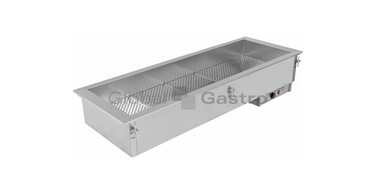 Vestavná teplá udržovací vana ASBER DDBM – statický suchý sálavý ohřev v celonerezovém provedení s mechanickým termostatem a regulací (30°až 90°C) s centrálním vypínačem. Nedělená vana s hloubkou 160 mm vhodná pro GN1/1 s hloubkou max. 150 mm. Vana je opatřena perforovanými vložkami a polohovatelnými kotvícími prvky, které společně s lemem vany zajišťují přilnavost k pracovní desce po celé ploše.