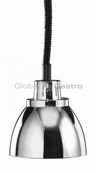 Závěsná lampa v provedení chrom. Ideální do prodejních prostor. S infra lampou nasvítíte pokrmy a udržíte je déle teplé. Atraktivní vzhled nasvícených produktů, ideální pro přímý prodej pokrmů TO-GO jako například pizza, masové pokrmy nebo i pasta.