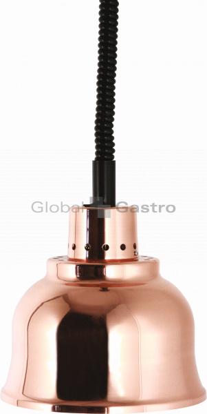 Závěsná lampa v provedení leštěná měď. Ideální do prodejních prostor. S infra lampou nasvítíte pokrmy a udržíte je déle teplé. Atraktivní vzhled nasvícených produktů, ideální pro přímý prodej pokrmů TO-GO jako například pizza, masové pokrmy nebo i pasta.