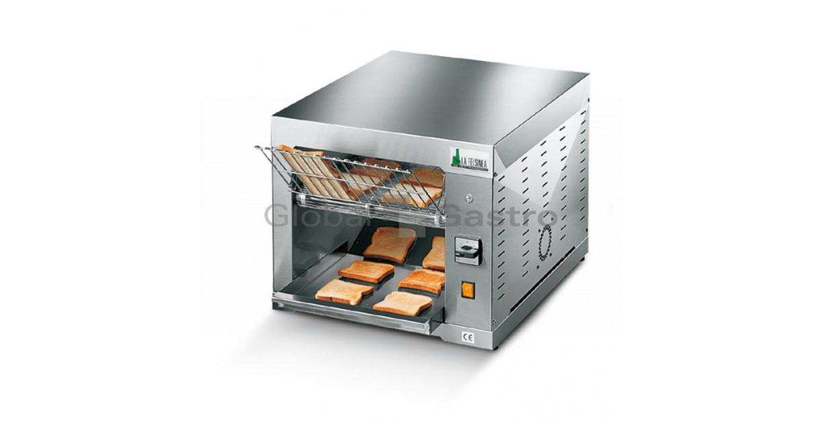 Jedinečné zařízení s výkonem až 80–360 toastů za hodinu. Přední vstup i výstup toastů. Plynulá regulace rychlosti pásu.