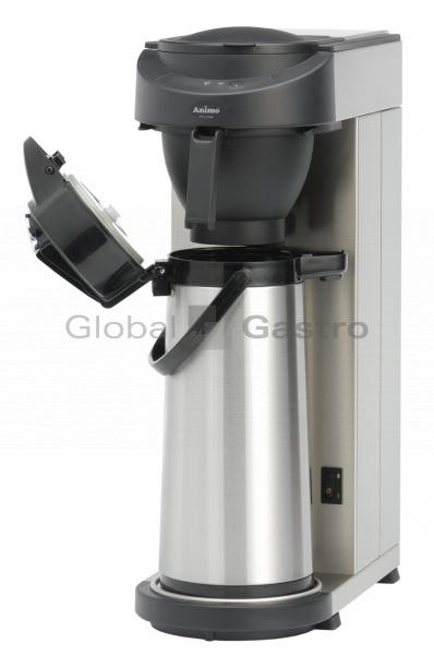 Výrobník filtrované kávy a čaje ANIMO s manuálním plněním vody (MT-100), nebo model s pevným přívodem vody (MT-200) jedna nerezová termoska s pumpičkou a obsahem 2,1 litru (nerezová vložka pro udržení teplých i chlazených nápojů). Automatické přerušení filtrace při odebrání termosky. Nerezové provedení v kombinaci s elegantním černým plastem.