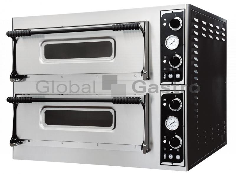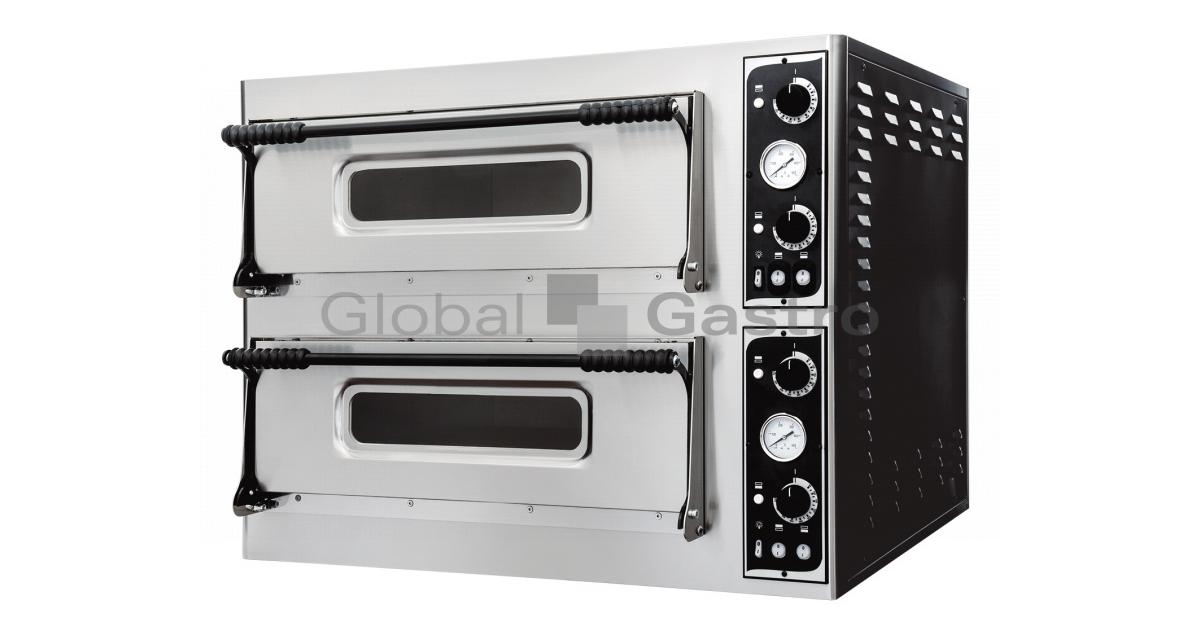 Dvoukomorová elektrická pizza pece řady BASIC MEDIUM. Snadné a přehledné mechanické ovládání umožňuje individuální nastavení výkonu spodních a horních těles v komoře případně vypnutí spodního, nebo horního tělesa. Pece jsou vybaveny analogovým teploměrem,a termostatem do 500°C, vnitřním osvětlenímkomory. Provedení s nerezovým čelem, kvalitní izolací a opláštění v laku.