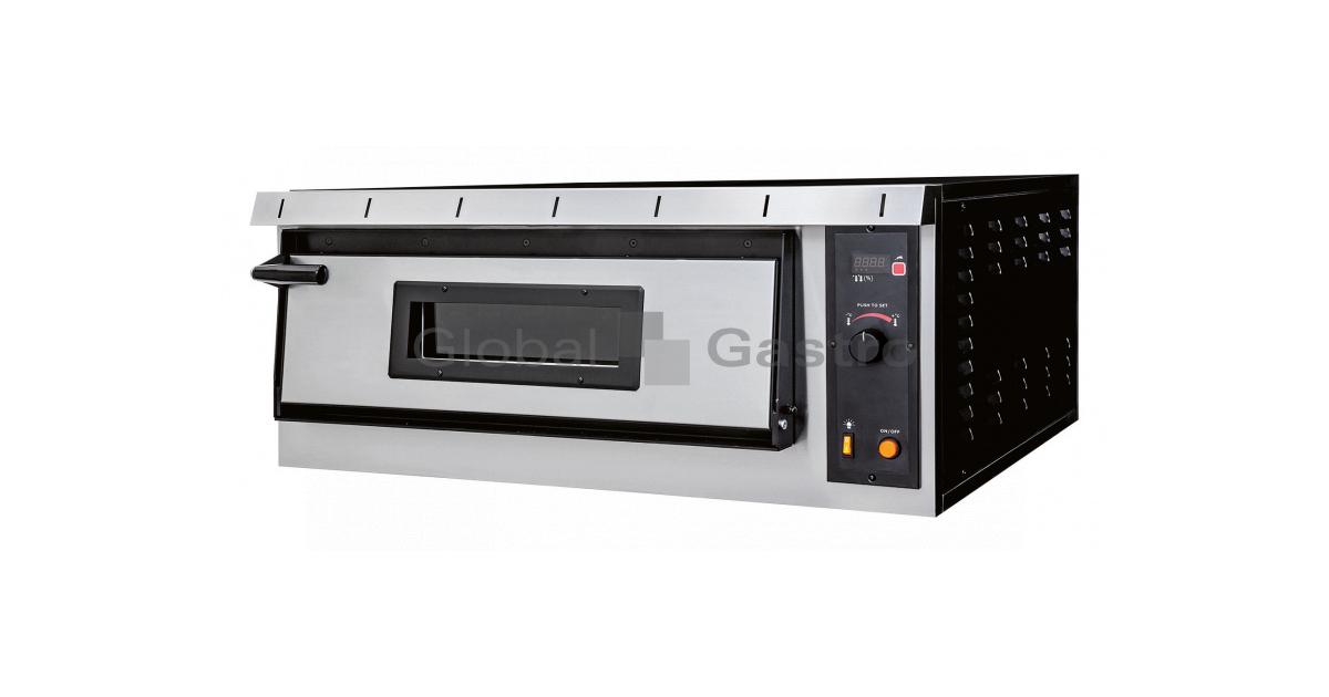 Výkonná elektrická pizza pece řady PLUS XL DIGITAL – jednokomorová. Snadné digitální ovládání umožňuje přesné nastavení teploty v komoře, individuální % nastavení výkonu 3 spodních a 3 horních vysokoteplotních pancéřovaných těles (rychlý náběh a rozložení teploty) v komoře. Funkce „BUSTER“ pro okamžité zvýšení výkonu na 100% (spodních a horních těles) až do dosažení nastavené teploty v komoře. Komora je vybavena, komínkem, digitálním teploměrem a termostatem do 500°C. Robustní pec, kvalitní izolace z minerální vlny, šamotové dno, osvětlení komory, nerezové provedení dveří a čela. Pec je navíc vybavena horním zákrytem.