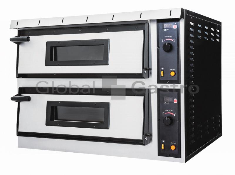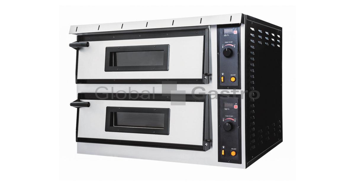 Výkonná elektrická pizza pece řady PLUS XL DIGITAL – dvoukomorová. Snadné digitální ovládání umožňuje přesné nastavení teploty v komoře, individuální % nastavení výkonu 3 spodních a 3 horních vysokoteplotních pancéřovaných těles (rychlý náběh a rozložení teploty) v každé komoře. Funkce „BUSTER“ pro okamžité zvýšení výkonu na 100% (spodních a horních těles) až do dosažení nastavené teploty v komoře. Komora je vybavena, komínkem, digitálním teploměrem a termostatem do 500°C. Robustní pec, kvalitní izolace z minerální vlny, šamotové dno, osvětlení komory, nerezové provedení dveří a čela. Pec je navíc vybavena horním zákrytem.