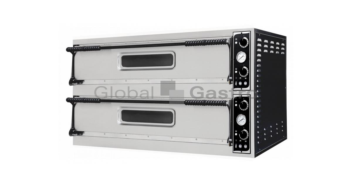 Dvoukomorová „mělká-široká“ elektrická pizza pece řady BASIC XL. Snadné a přehledné mechanické ovládání umožňuje individuální nastavení výkonu spodních a horních těles v komoře případně vypnutí spodního, nebo horního tělesa. Pece jsou vybaveny analogovým teploměrem,a termostatem do 500°C, vnitřním osvětlenímkomory. Provedení s nerezovým čelem, kvalitní izolací a opláštění v laku.