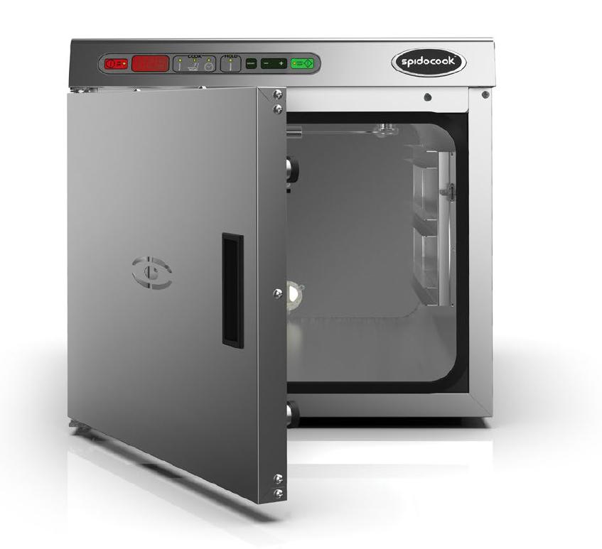 Unox SPIDOCOOK Caldolux SCH030 ohřívací zařízení, které využívá sálavého tepla a přirozené vlhkosti potravin. Speciální systém odvlhčení je vhodný i pro obalované potraviny. Topný systém bez ventilátoru zajišťuje mírný a tichý ohřev.