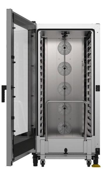 Teplota předehřátí až na 300°C nastavitelná obsluhou pro každý program zvlášť udržovací režim „HOLD“ Kontinuální režim „INF“ Vizualizace a nastavení reálného času, teploty sondy jádra, teploty uvnitř komory, vlhkosti a rychlosti otáček ventilátorů Nastavitelné zobrazení teploty v °C nebo °F Ovládací panel MASTER.Touch s možností volby ze 34 jazyků Technické detaily
